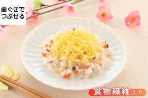 人参と椎茸入りの酸味を抑えた酢飯に錦糸卵をトッピング。